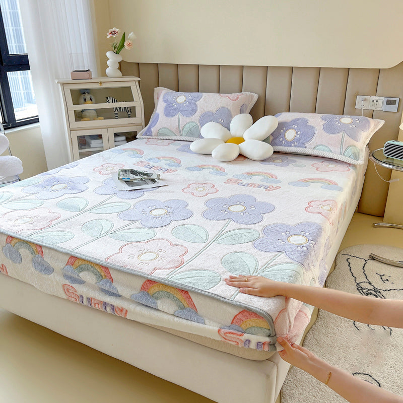 Modern Printed Bed Sheet Set Flannel Winter Pillowcase for Bedroom