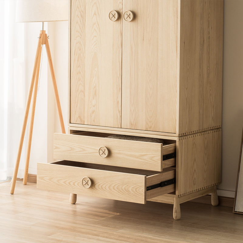 Light Brown Kid's Wardrobe Wooden High Gloss Coat Locker with Garment Rod