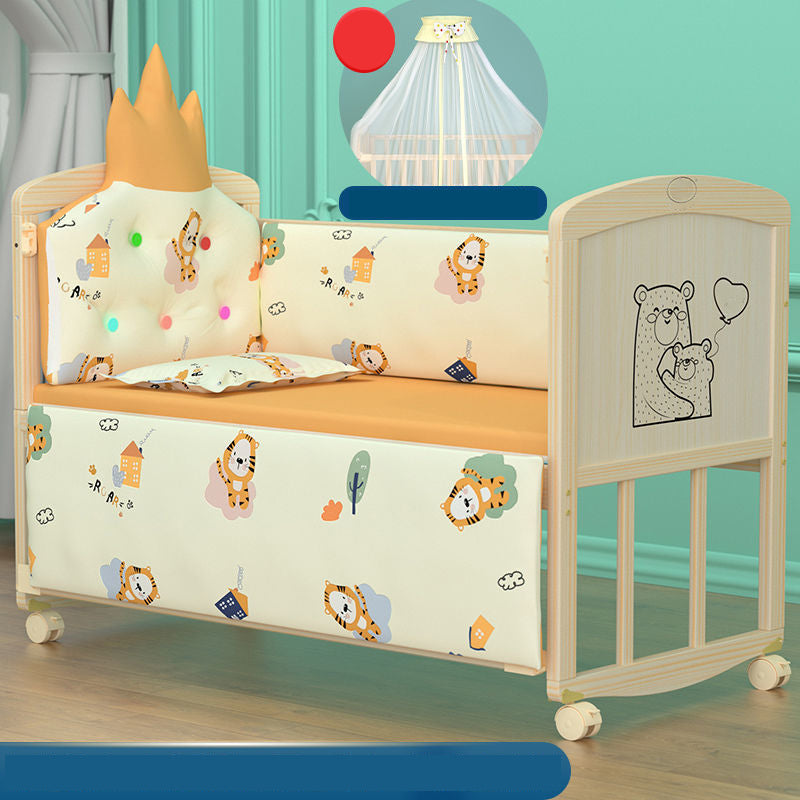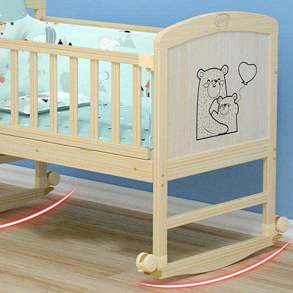 Wood Scandinavian Baby Crib with Guardrail Nursery Crib with Wheels