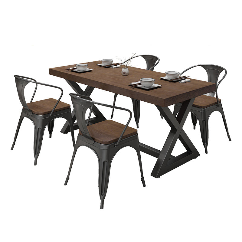 Pine Wood Dark Brown Dining Table Set 1/4/5 Pcs Industrial Dinette Set for Home