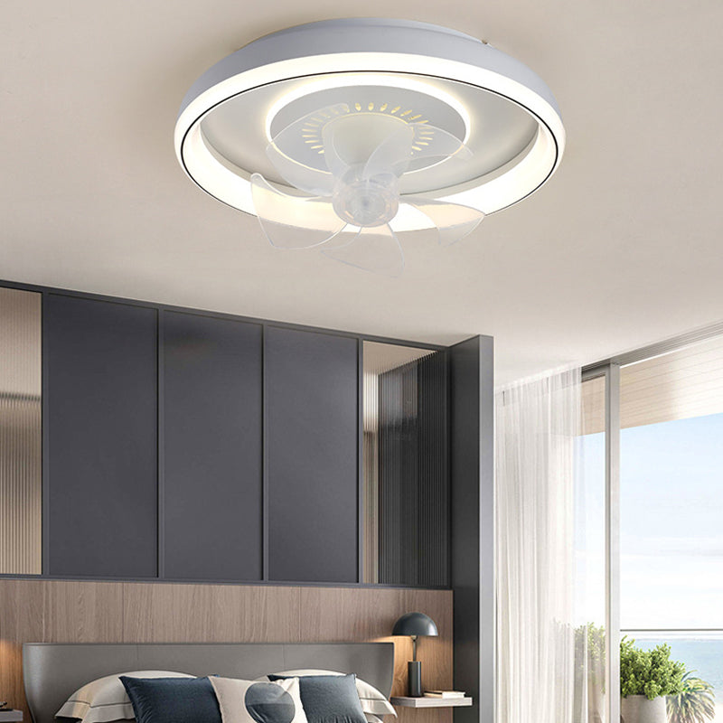 5-Blade Modern Ceiling Fan White Metal Fan with Light for Living Room