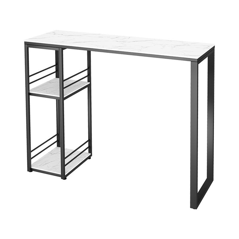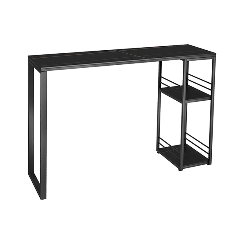Industrial Rectangle Stone Pub Bar Table Indoor Black Iron Bar Dining Table with Shelf