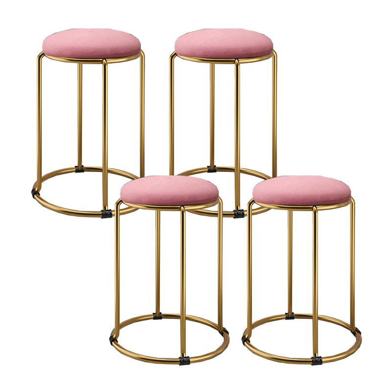 Contemporary Ottoman Fabric Upholstered Metal Frame Round Ottoman