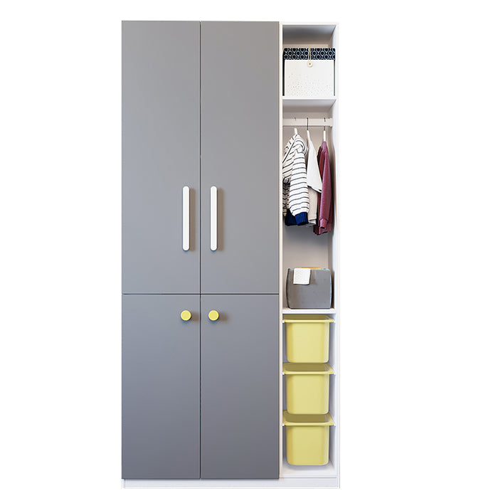 Grey Wooden Kid's Wardrobe High Gloss 2-Door Contemporary Coat Locker