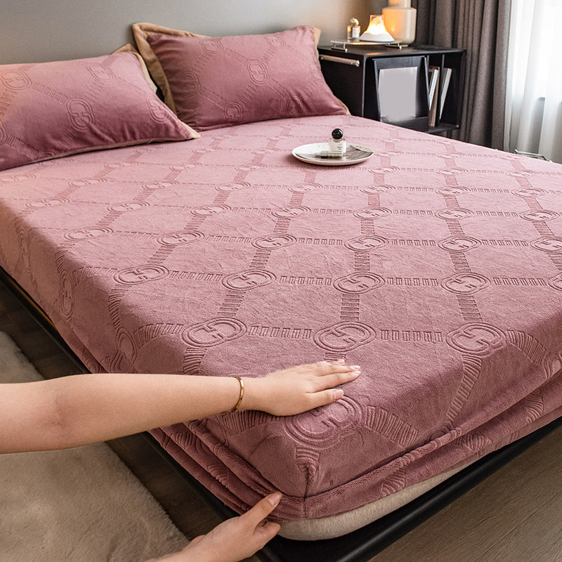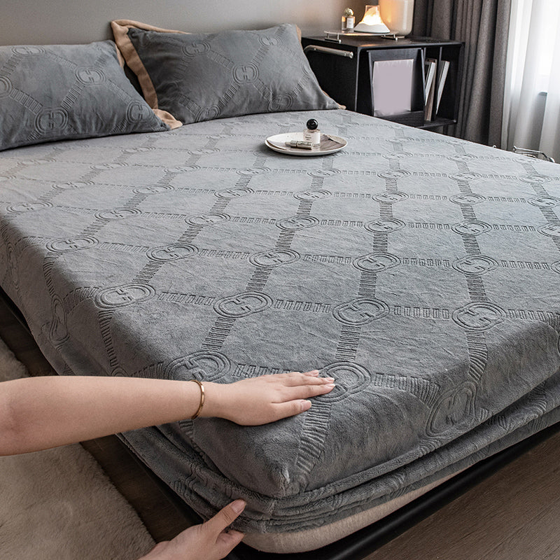 Flannel Bed Sheet Set Modern Solid Elegant Fitted Sheet for Bedroom