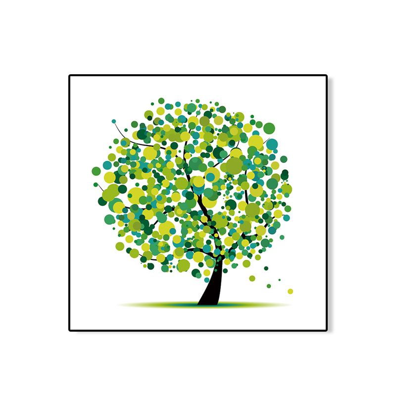 Illustration Tree Wall Art Print Green Kids Style Canvas for Living Room, Textured