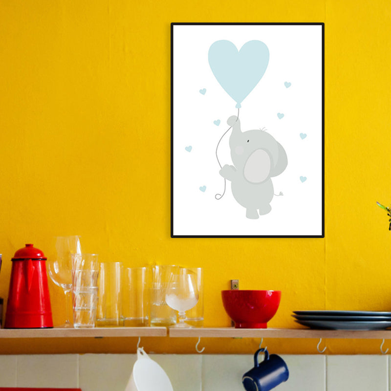 Blue Balloon and Elephant Wall Decor Animal Children's Art Textured Canvas for Baby Room