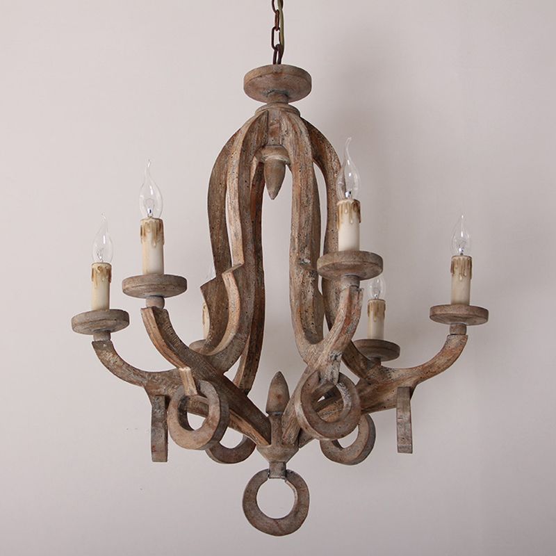 Wooden Candlestick Chandelier Pendant Light Vintage 6 Bulbs Living Room Hanging Light