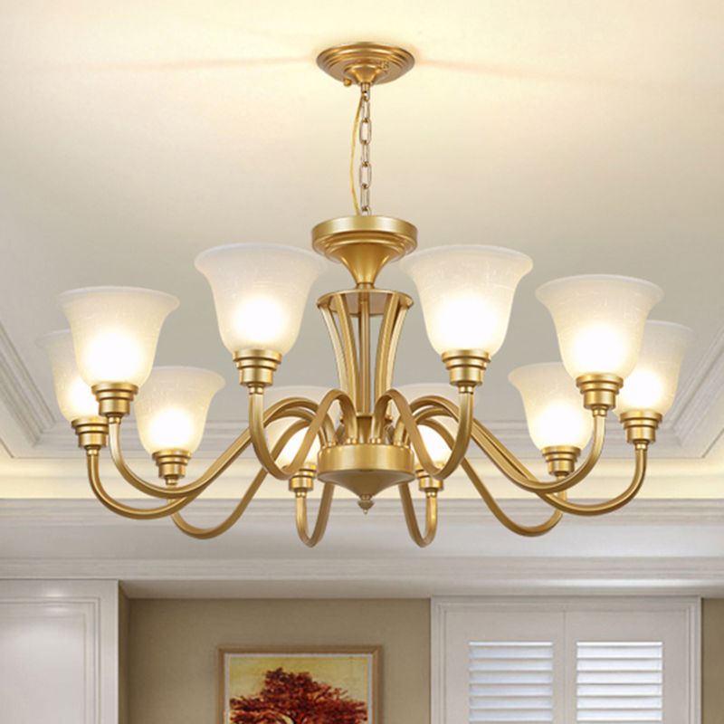 Bell Frost Glass Ceiling Lighting Traditional Living Room Chandelier Light Fixture in Brown