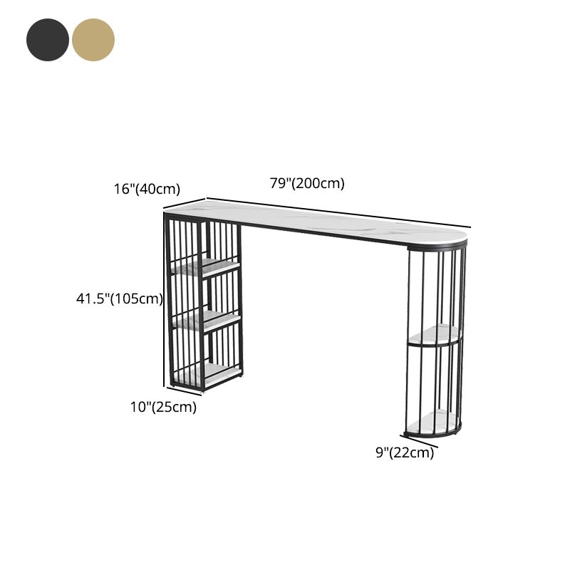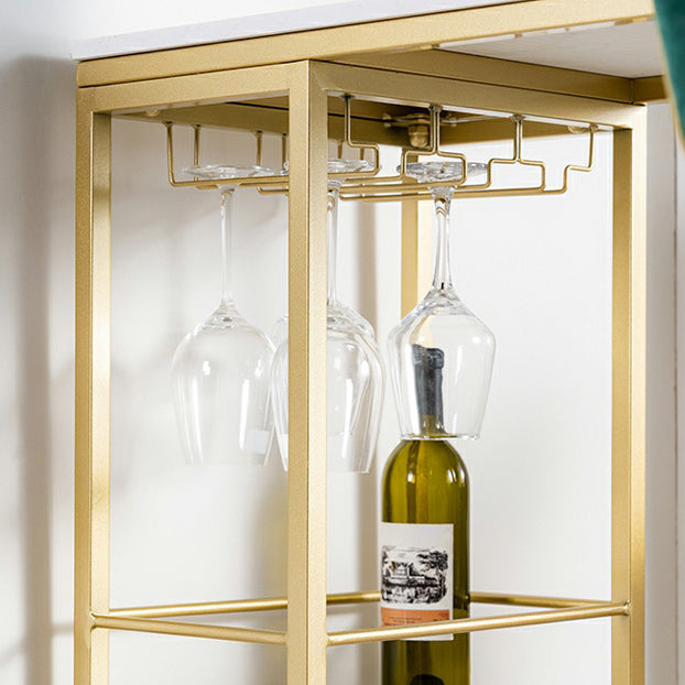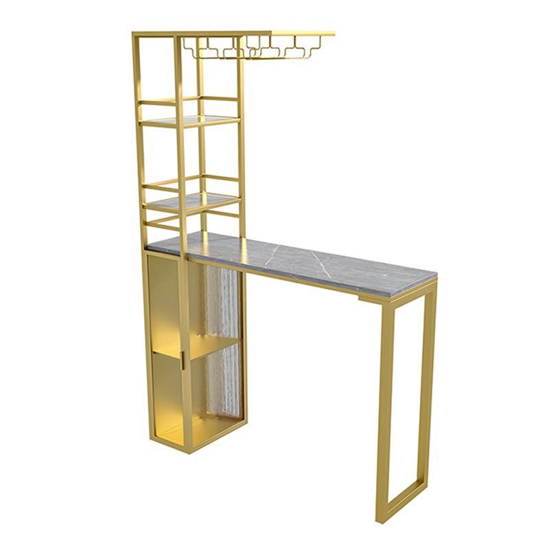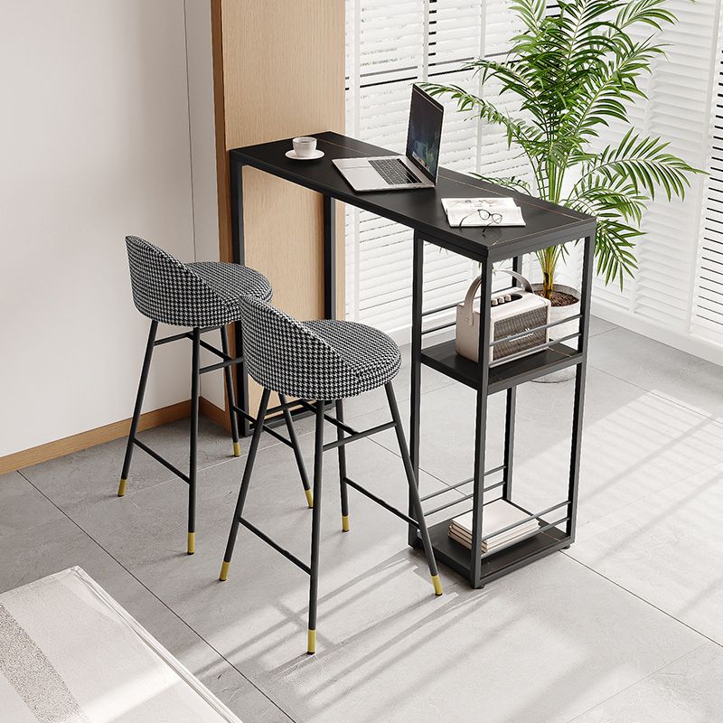 Modern Iron Bistro Table Stone Top Rectangle Indoor Bar Dining Table with Wine Rack