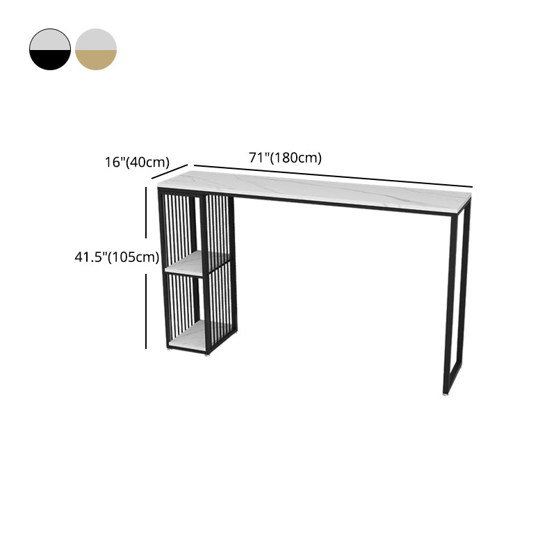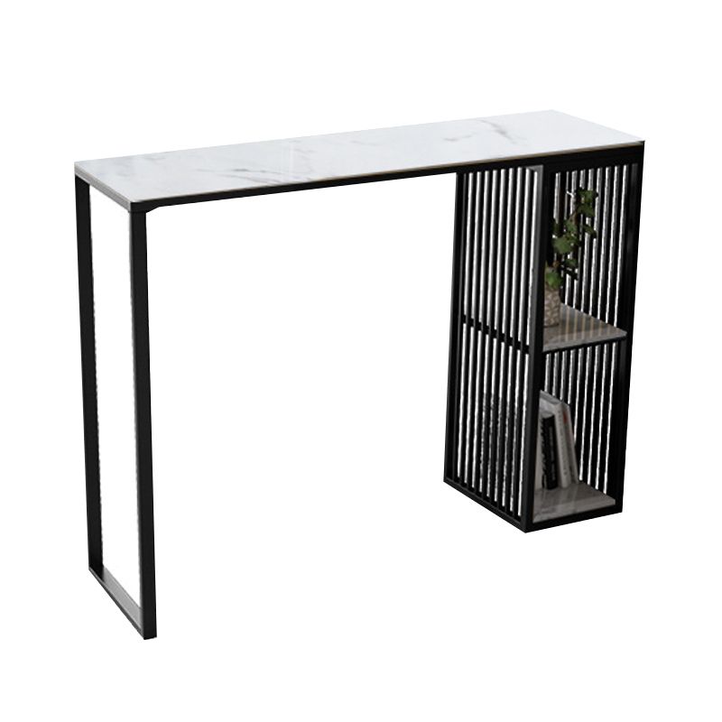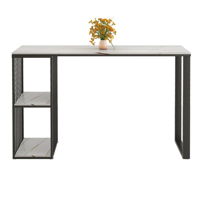 Modern Black Iron Bar Dining Table with White Stone Top Rectangle Indoor Bistro Table