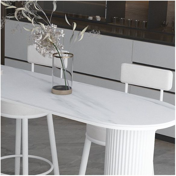 Stone Bar Dining Table Modern Oval Bar Table with Double Pedestal for Kitchen Dining Room