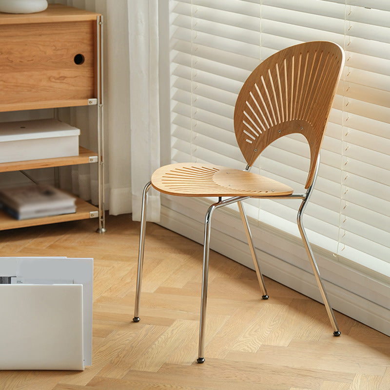 Contemporary Style Dining Room Chairs Metal Armless Chair with Wooden Legs