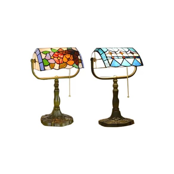 Blue/Orange 1 Light Table Lamp Tiffany Stylish Stainless Glass Rollover Shade Bankers Table Lamp with Pull Chain