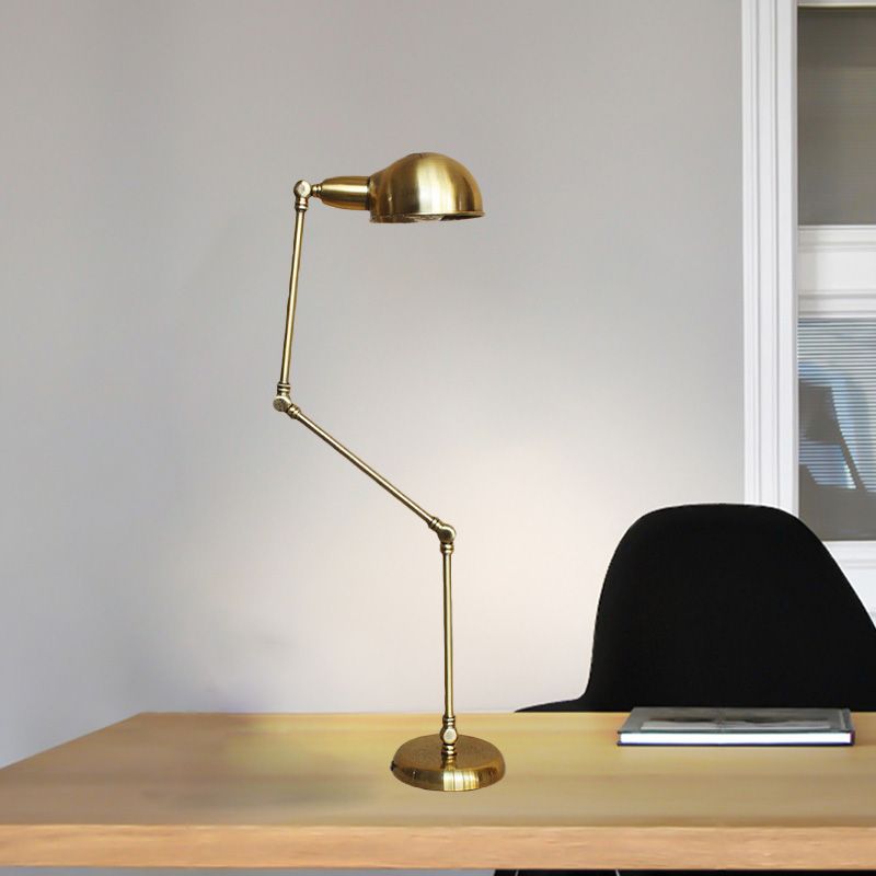 1 Head Desk Light with Dome Shade Vintage Loft Metallic Adjustable Desk Lamp in Gold for Bedroom