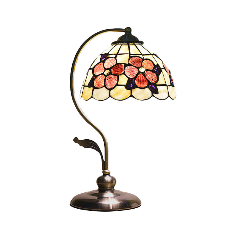 Bronze Gooseneck Table Lamp Tiffany Single-Bulb Metal Night Light with Floral Shell Lampshade