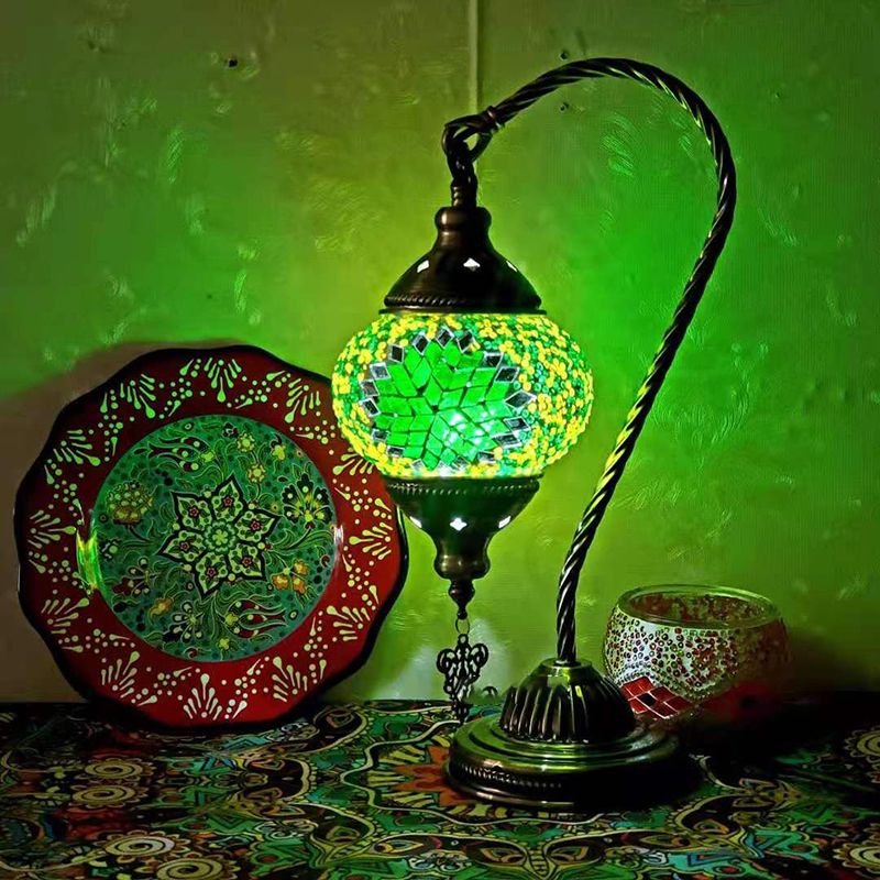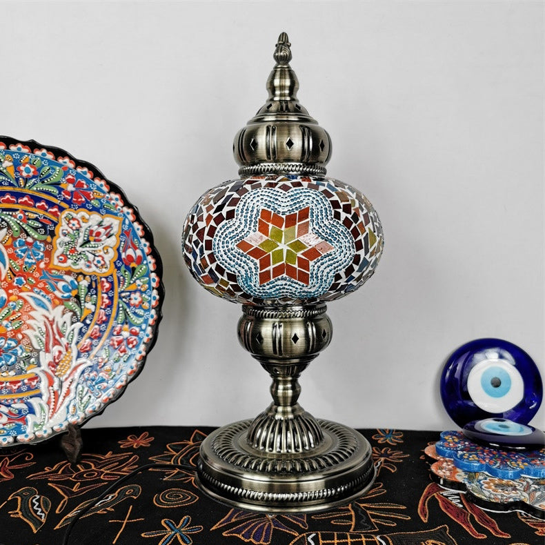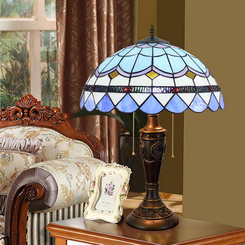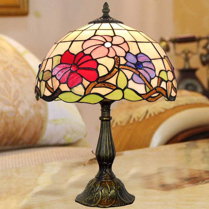 1��Head Table Lamp Decorative Dome Shade Stained Glass Nightstand Light for Living Room