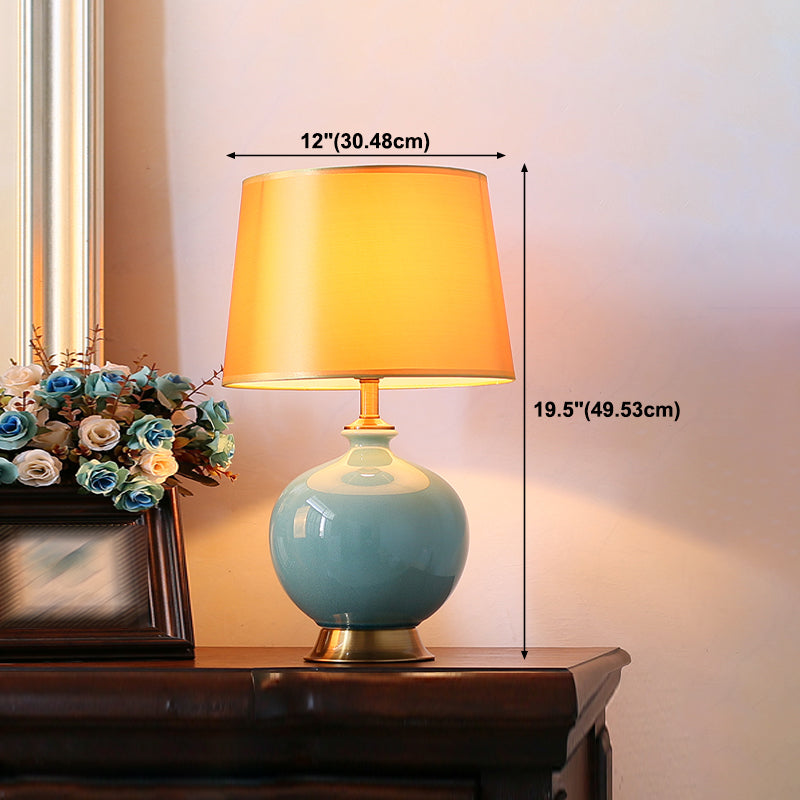 Artistic Tapered Drum Shaped Table Lamp Fabric 1��Bulb Bedside Nightstand Light with Ceramic Base