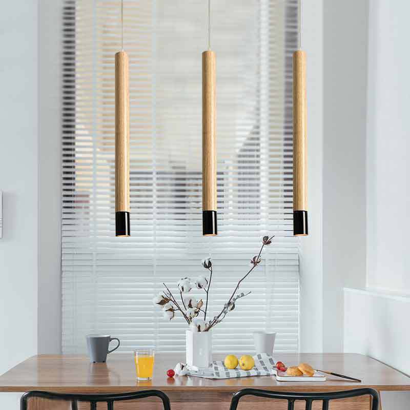 Tubular Wood LED Pendant Light Contemporary 1/5/7/9-Head Kitchen Ceiling Hanging Lamp with Diffuser