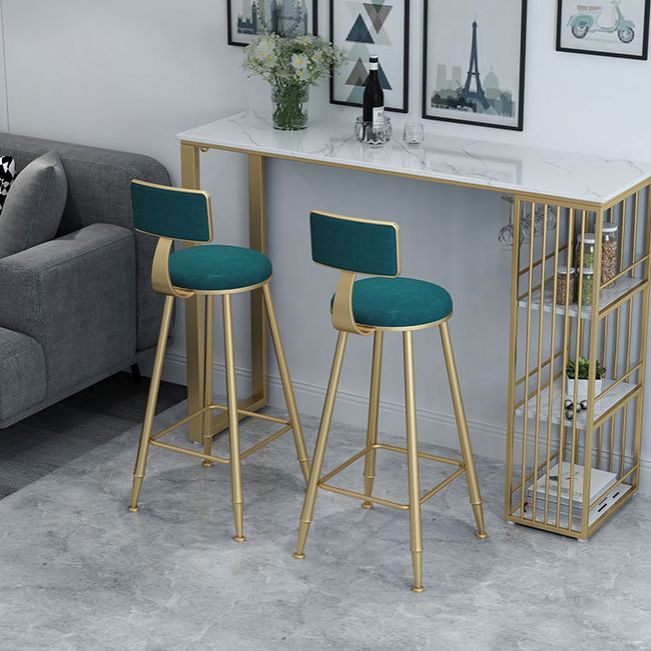 White Glam Style Bar Table in Iron Top and Faux Marble Bar Table for Living Room