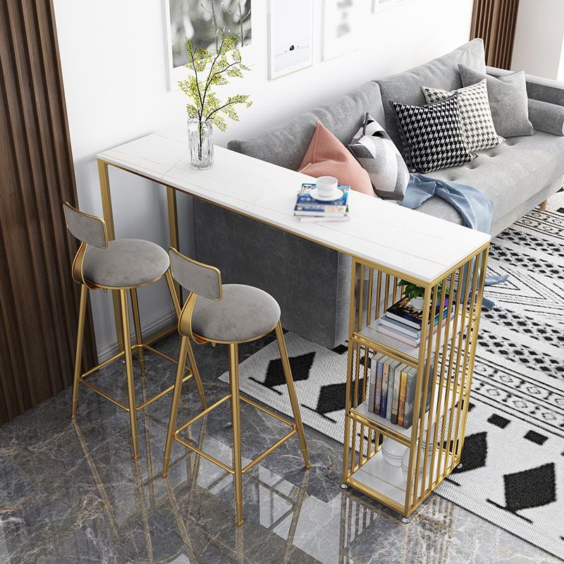 White Glam Style Bar Table Wood Rectangular Bar Table with Metal Base