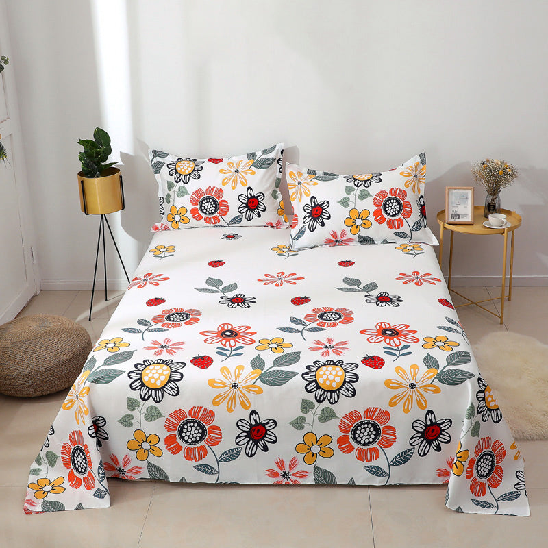 Bed Sheet Set Cotton Patterned Fade Resistant Breathable Soft Bed Sheet