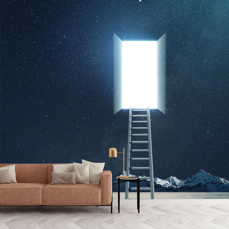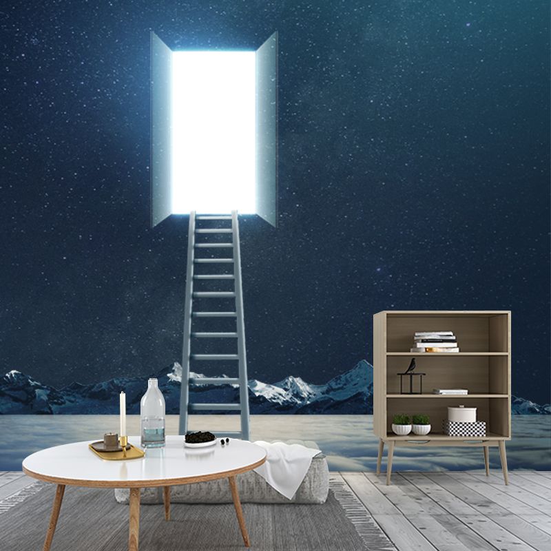 Big Time Travel Mural Wallpaper Blue Non-Woven Wall Decor, Moisture Resistant, Custom Size