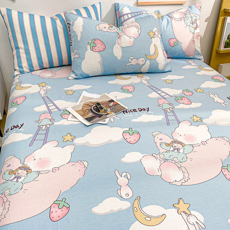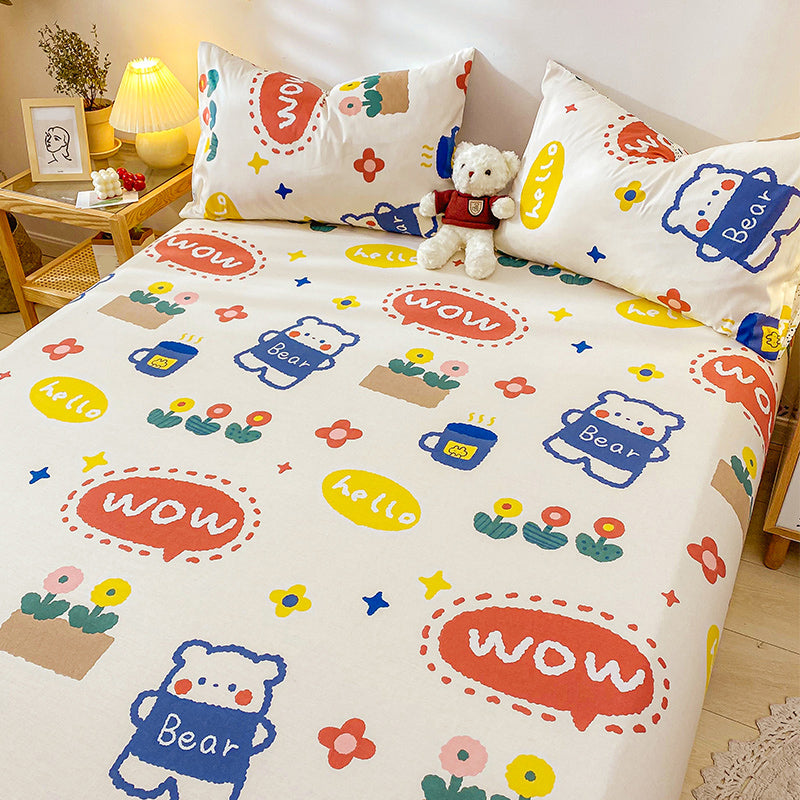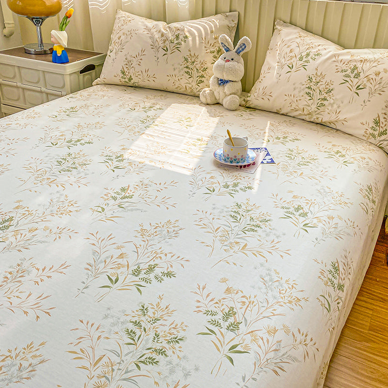 Cotton Bed Sheet Patterned Breathable Fade Resistant Soft Bed Sheet Set