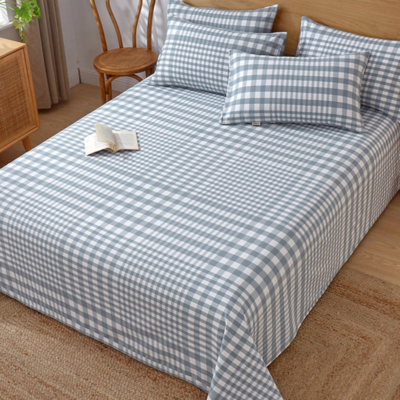 Cotton Fitted Sheet 3-Piece Lattice Fade Resistant Bed Sheet in Blue