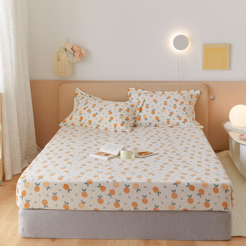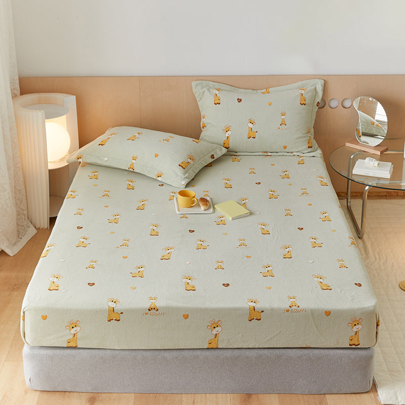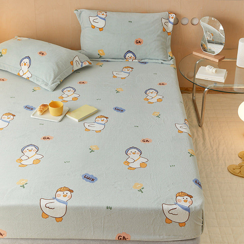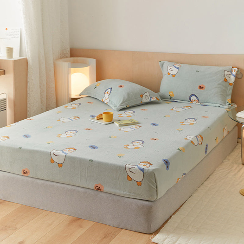 Fitted Sheet Cartoon Pattern Flannel Non-Pilling Fade Resistant Bed Sheet Set