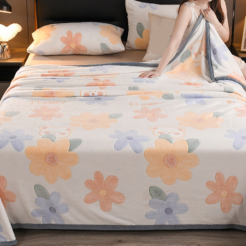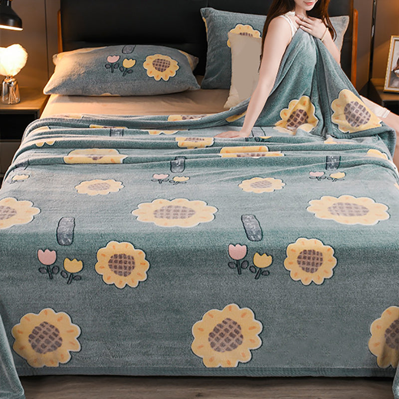 Fitted Sheet Flannel Floral Printed Wrinkle Resistant Breathable Super Soft Bed Sheet Set