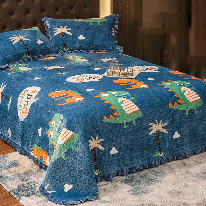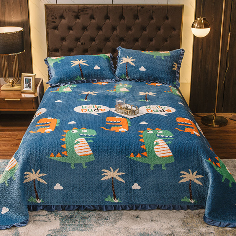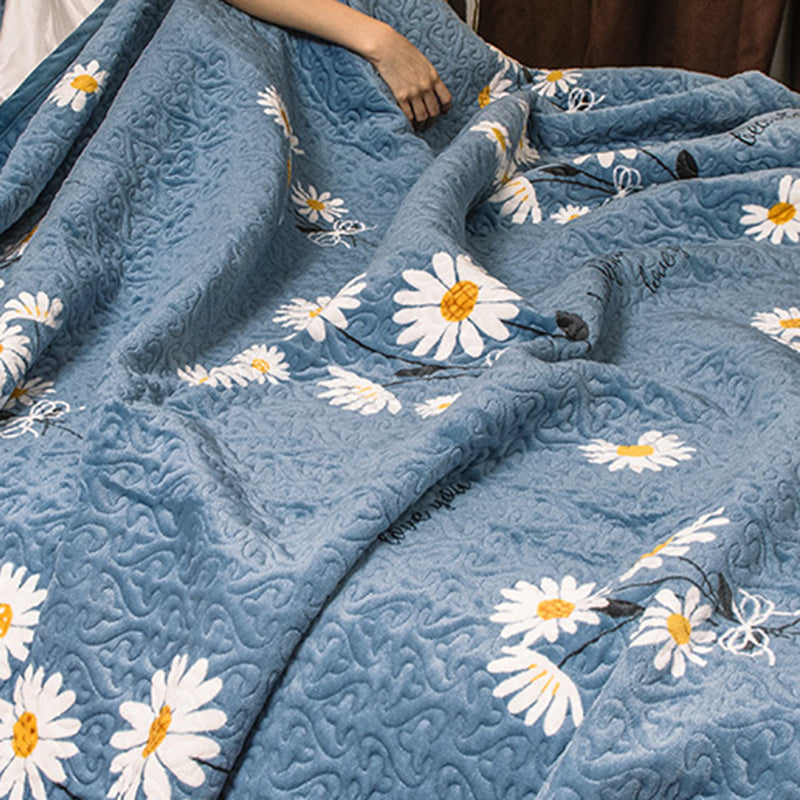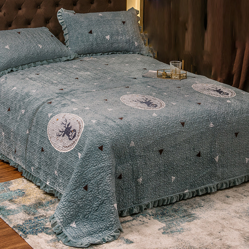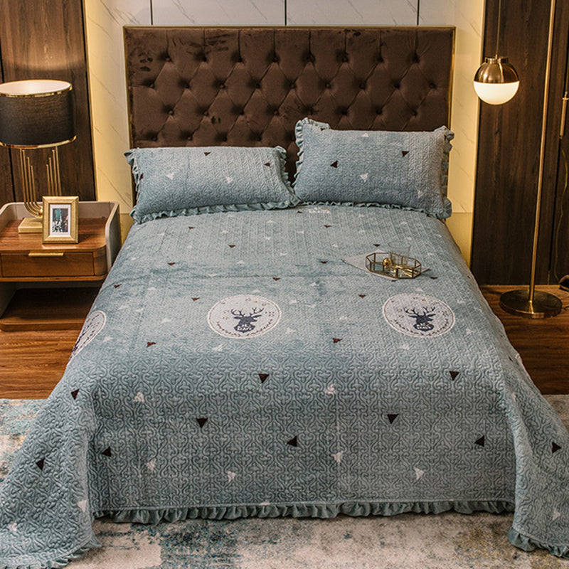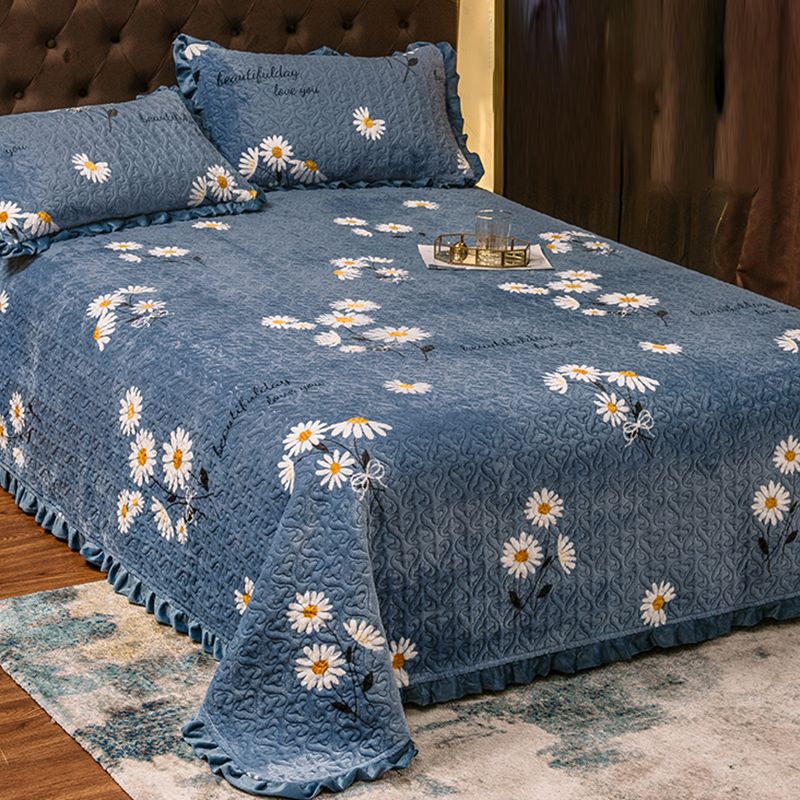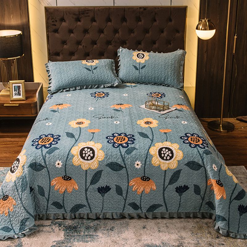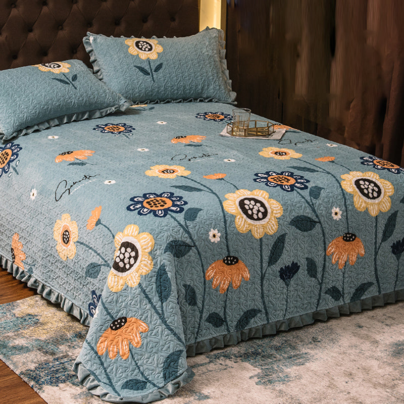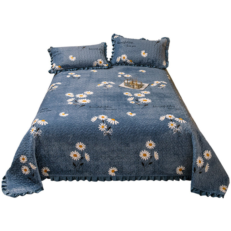 Flannel Bed Sheet Set Floral Pattern Ruffle Detailed Fade Resistant Bed Sheet