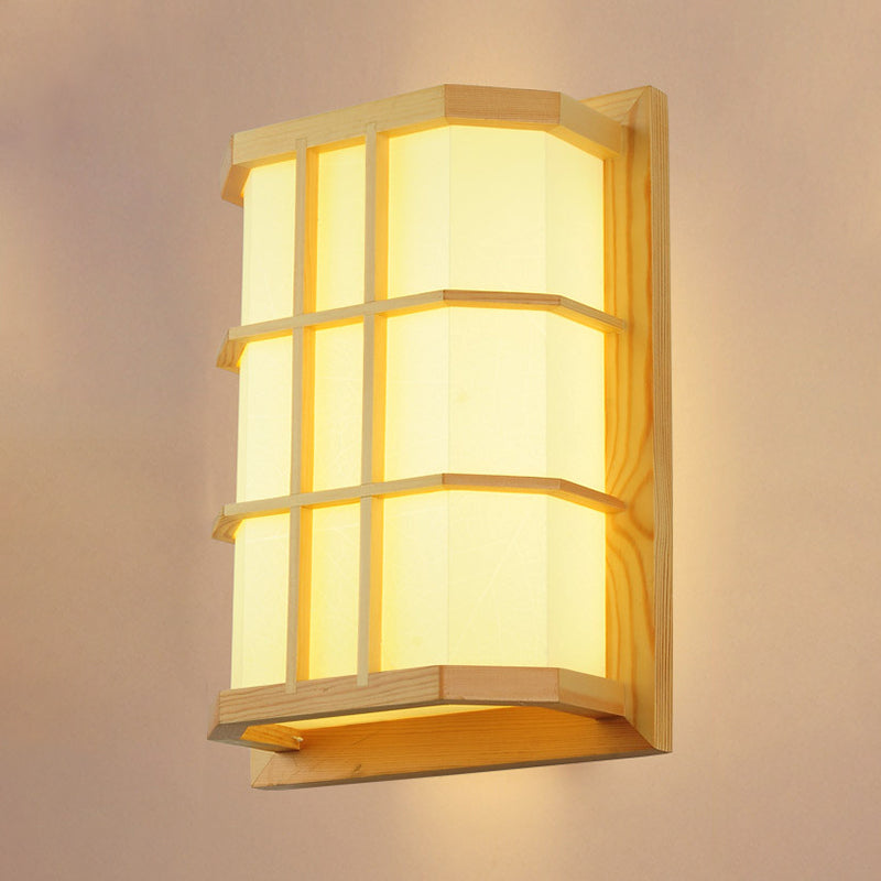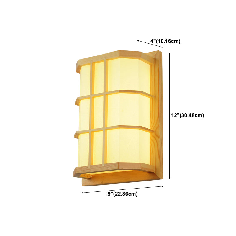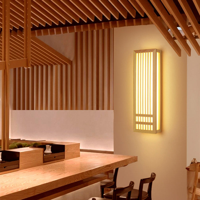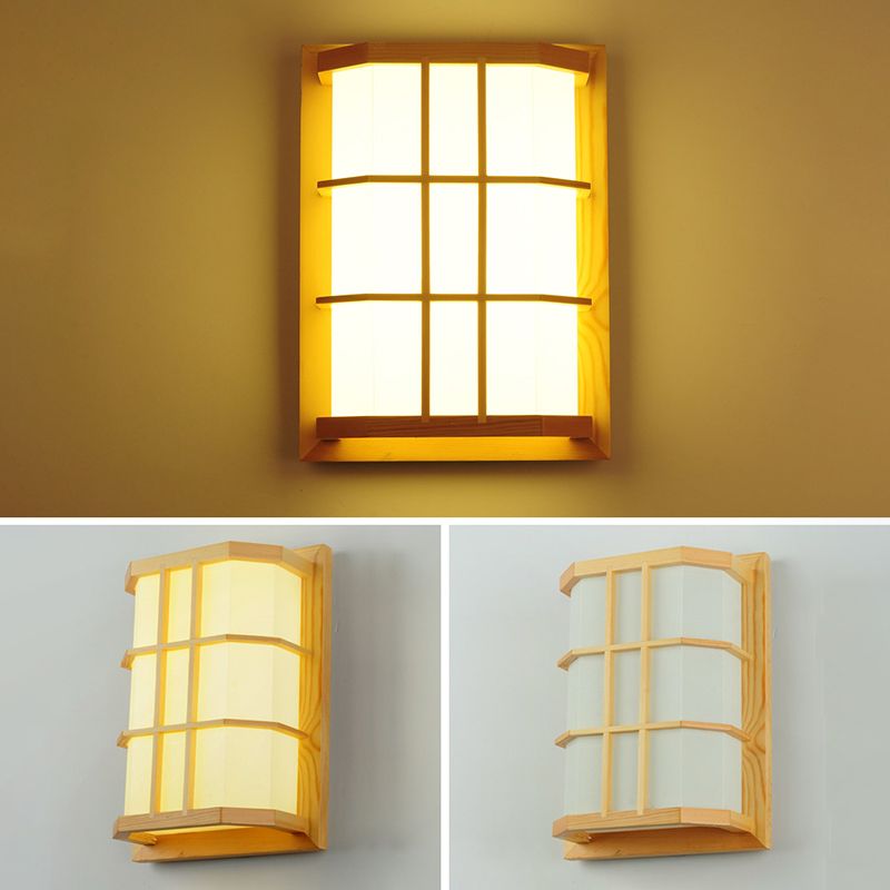 Japanese Style Led Wall Light Wooden Rectangle Shape Wall Lamp for Living Room