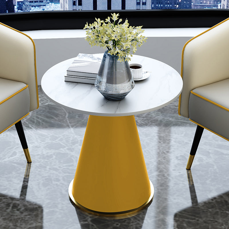Minimalist Pedestal Side Table Round Slate Sofa End Table for Living Room