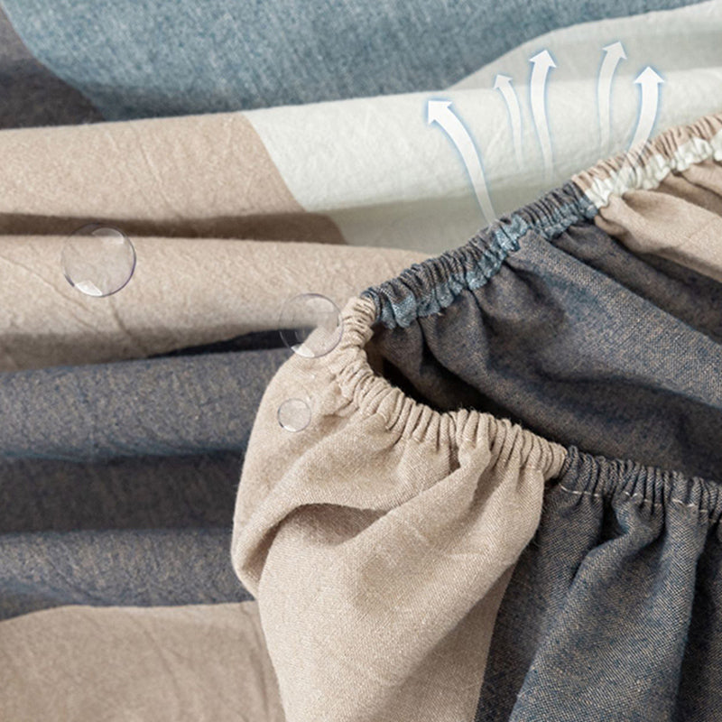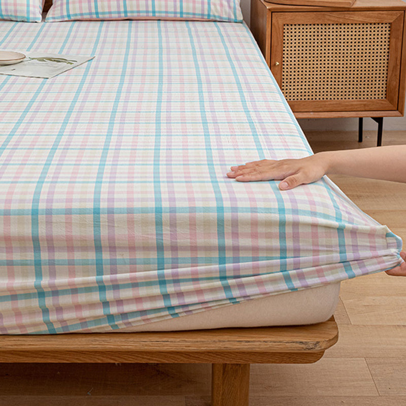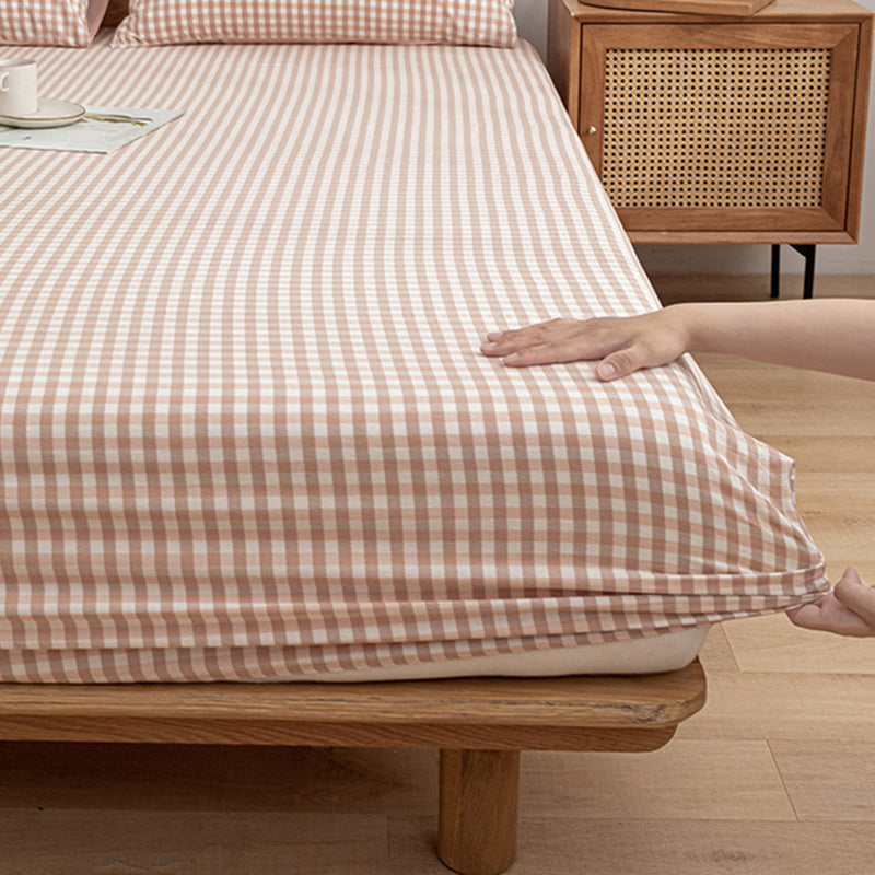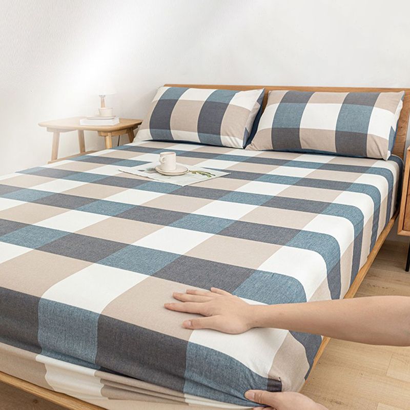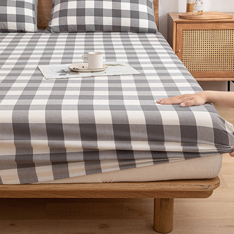 Modern Bed Sheet Set Cotton Twill Checkered Print Non-Pilling Fitted Sheet