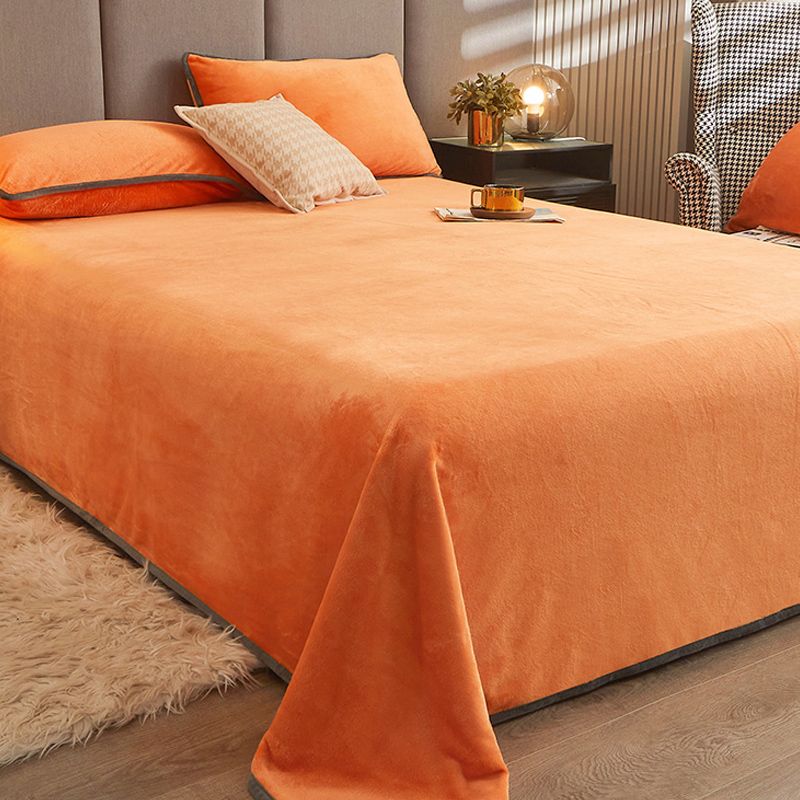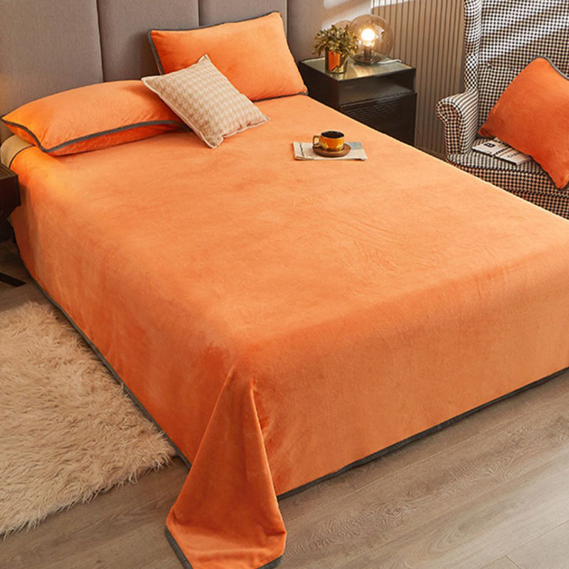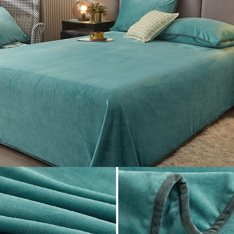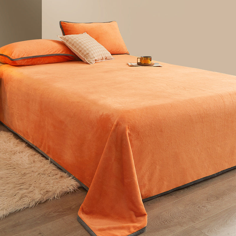 Modern Bed Sheet Set Polyester Solid Color Flannel Fade Resistant Fitted Sheet