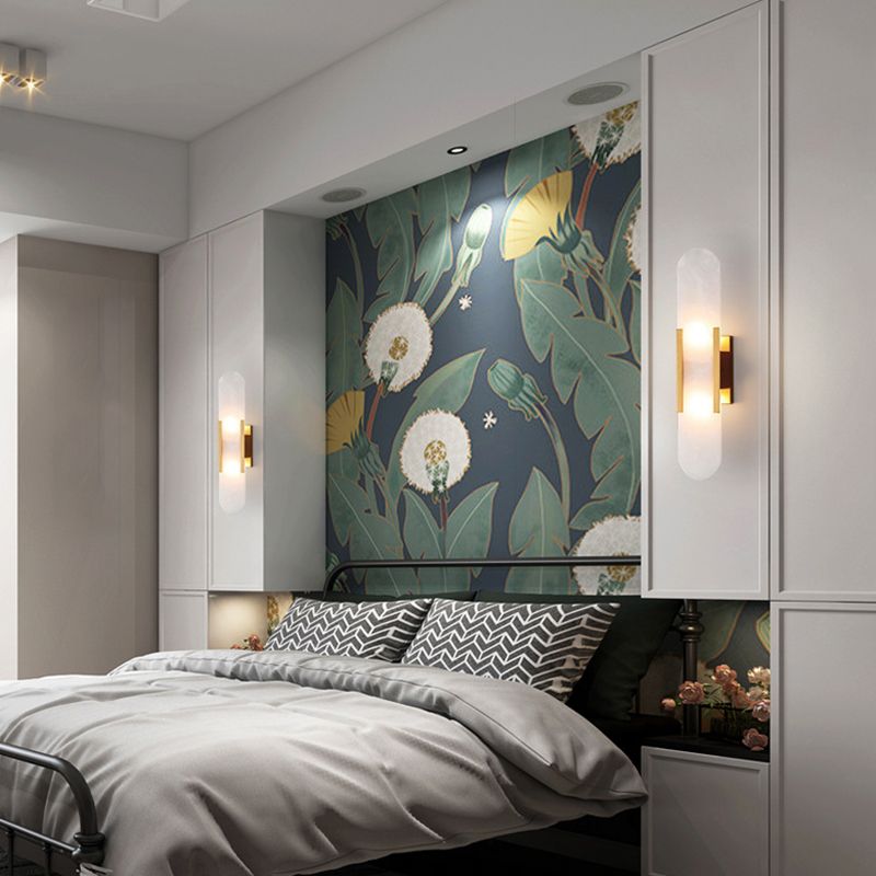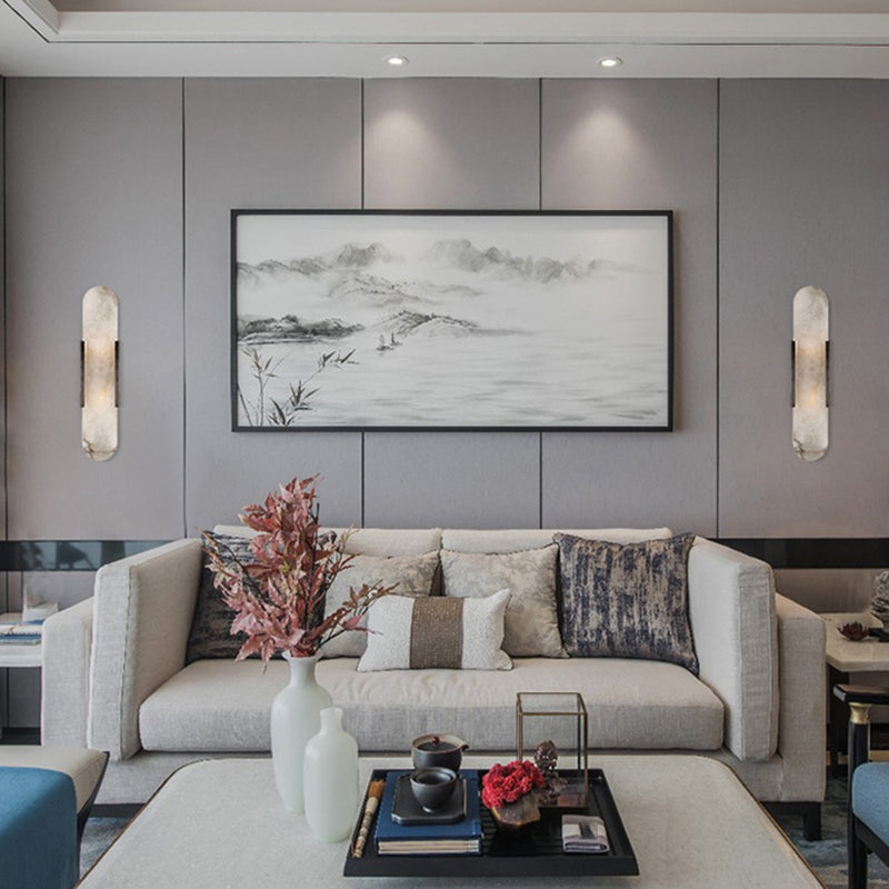 Modern Rectangle Sconce Light Fixture Stone 2-light Wall Lamp in White