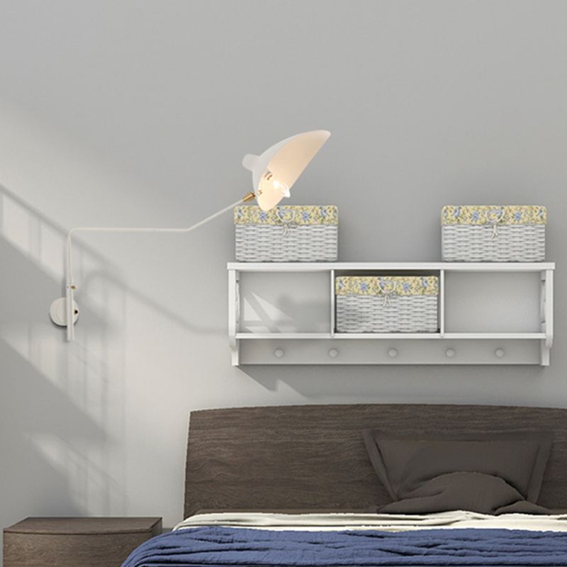 Modern Wall Sconce Linear Shape Reading Wall Light with Metal Shade in White for Bedroom