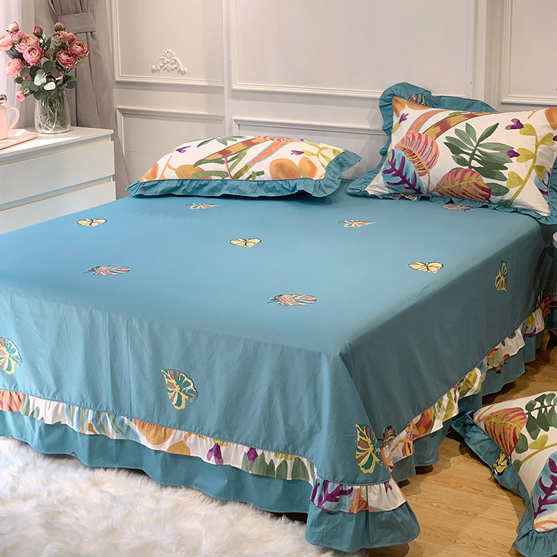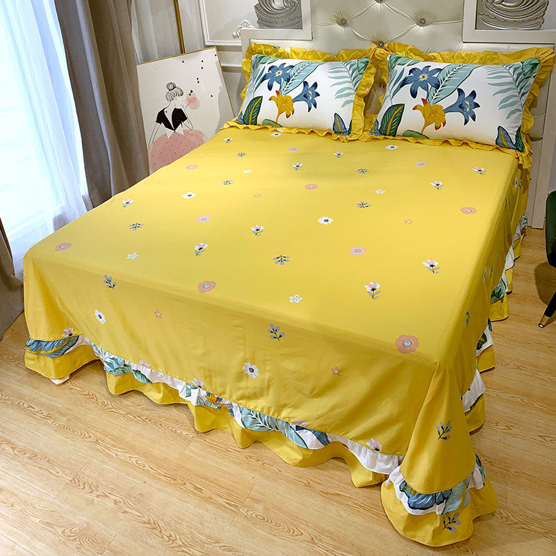 Sheet Sets Cotton Floral Printed Wrinkle Resistant Breathable Ultra Soft Bed Sheet Set