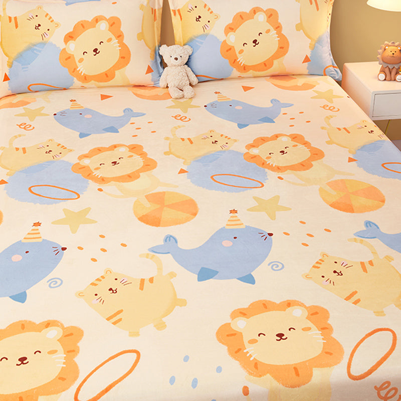 Sheet Sets Flannel Cartoon Printed Breathable Super Soft Wrinkle Resistant Bed Sheet Set