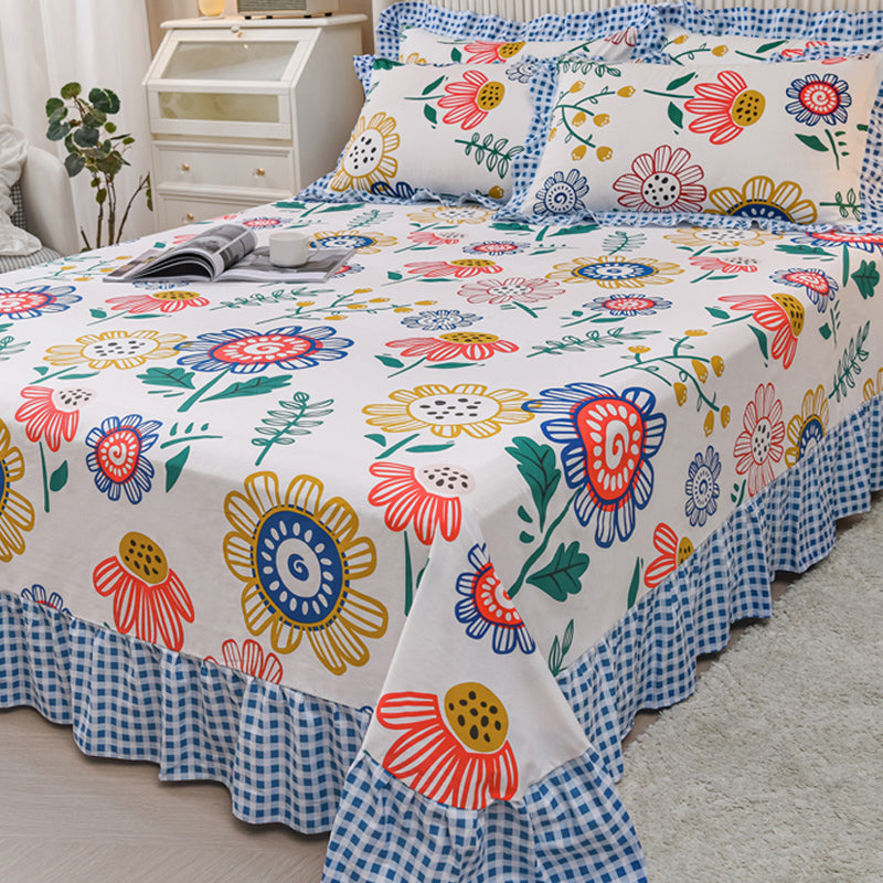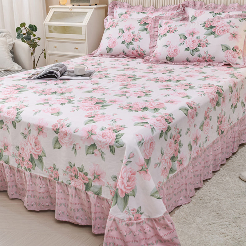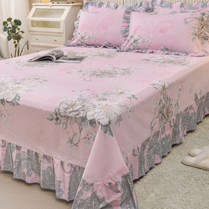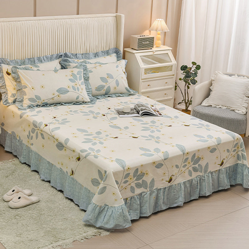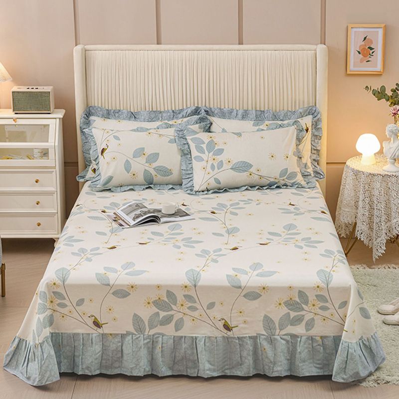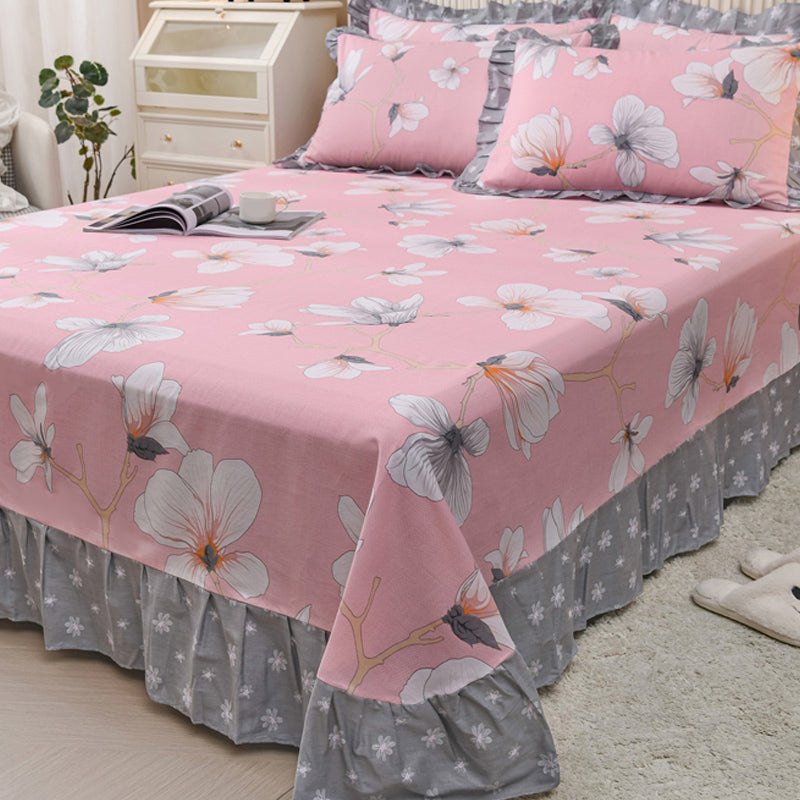Sheets Cotton Floral Printed Breathable Ultra Soft Wrinkle Resistant Bed Sheet Set