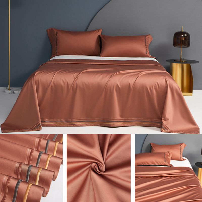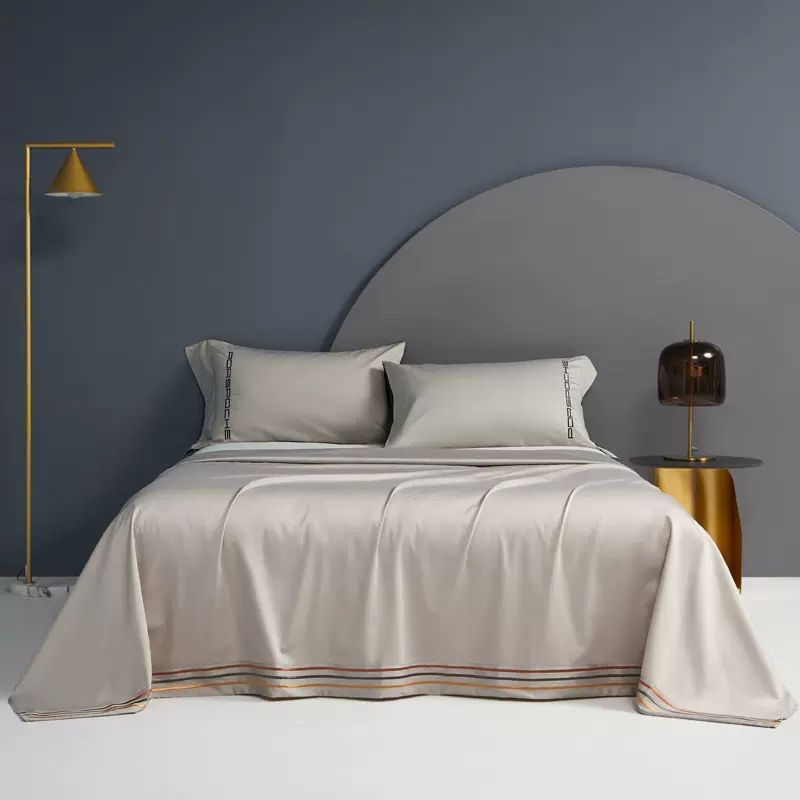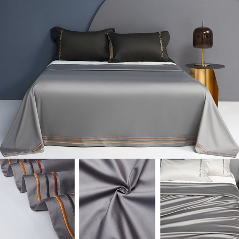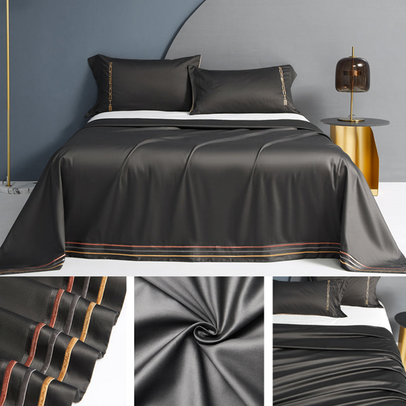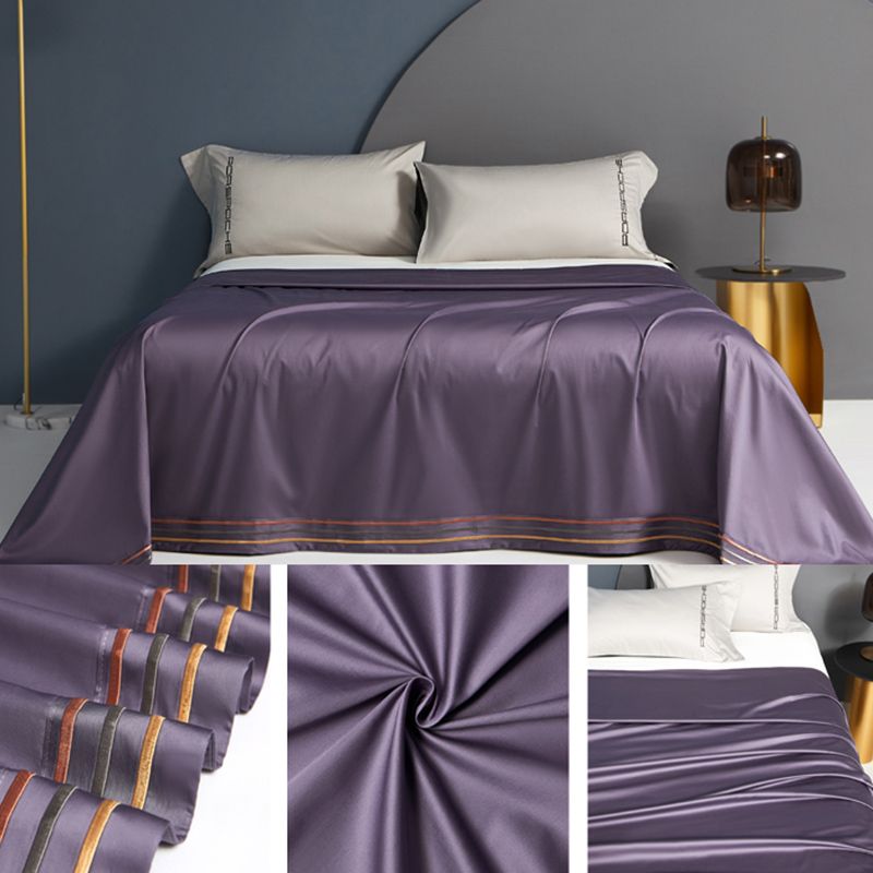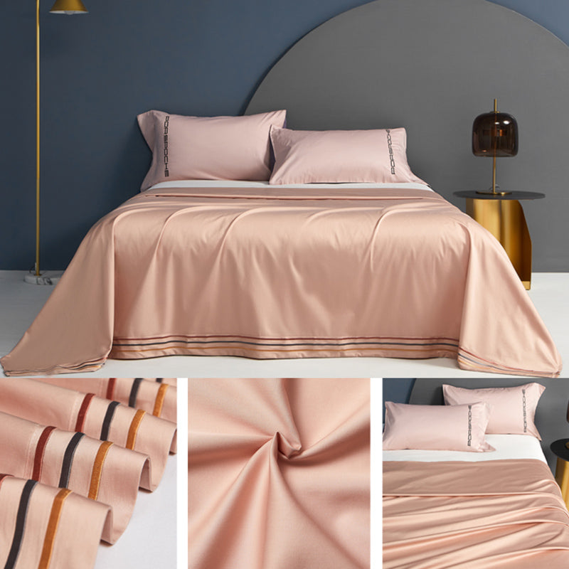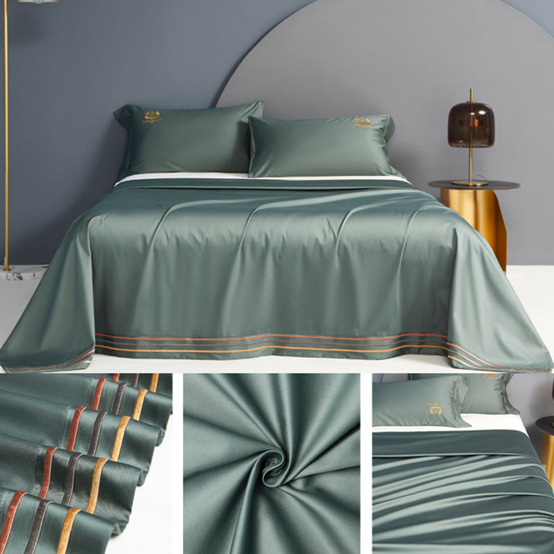 Silky Bed Sheet 3-Piece Embroidery Striped Wrinkle Resistant Sheet Set