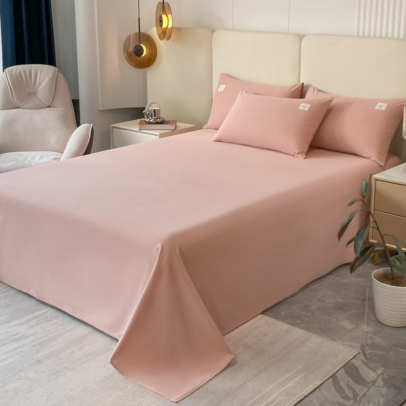 Solid Color Bed Sheet Set 100 Cotton Breathable Bed Sheet Set with Wrinkle Resistant