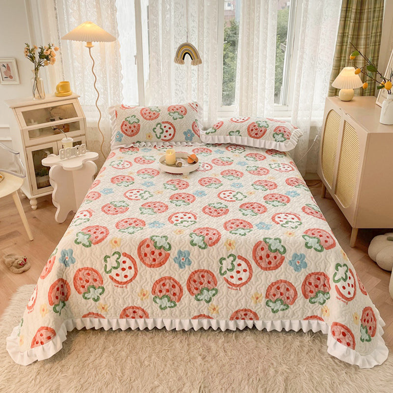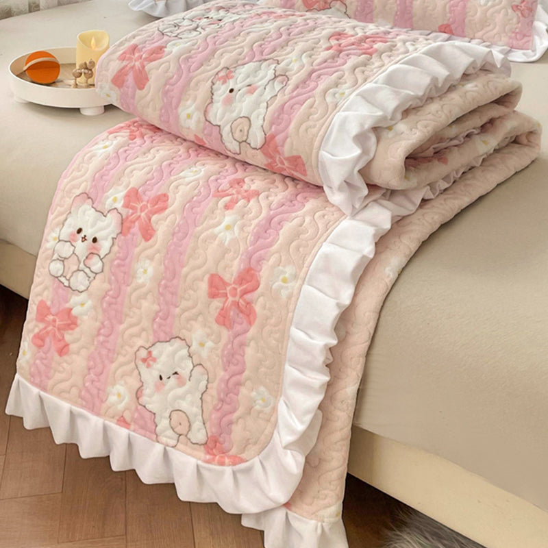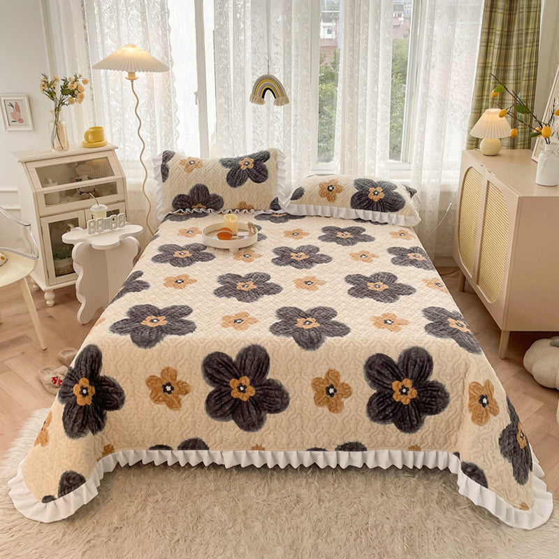 Vintage Bed Sheet Cartoon Printed Soft Flannel Non-Pilling Bed Sheet Set