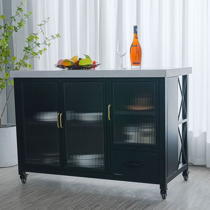 White Faux Marble Kitchen Trolley with Black Storage Cabinet