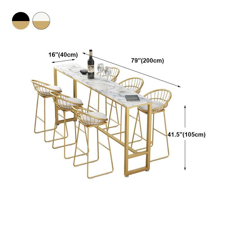 White Glam Style Bar Table in Iron Top and Faux Marble Bar Table, Only Table