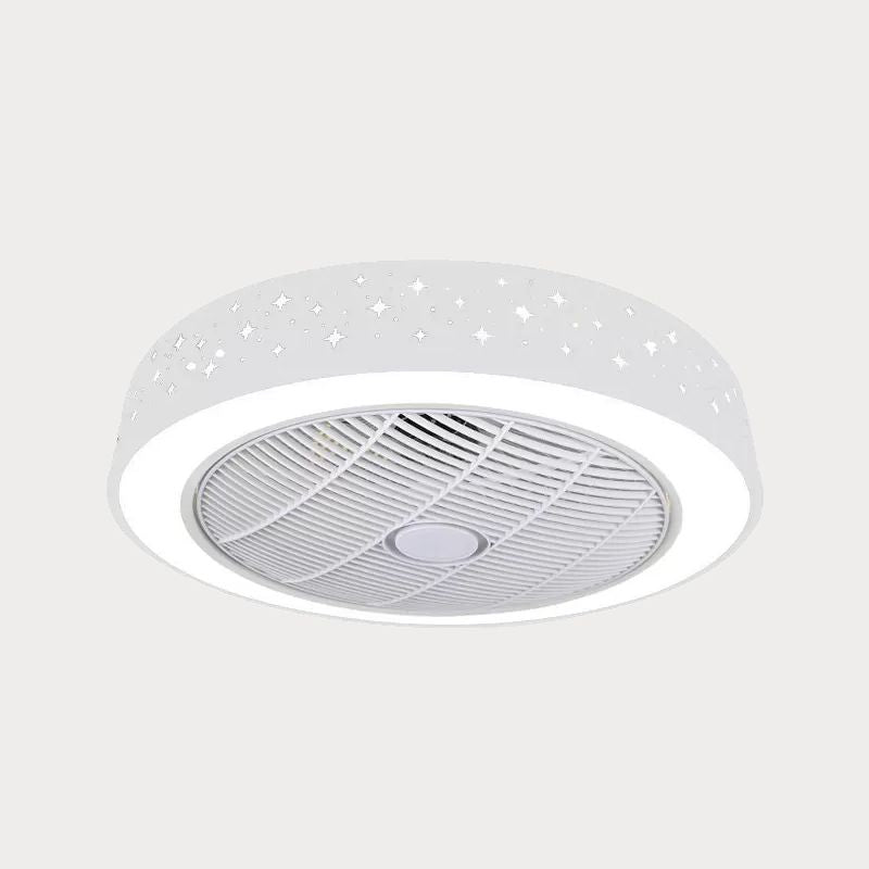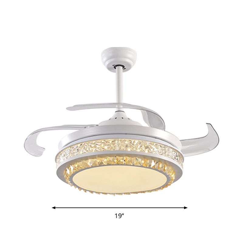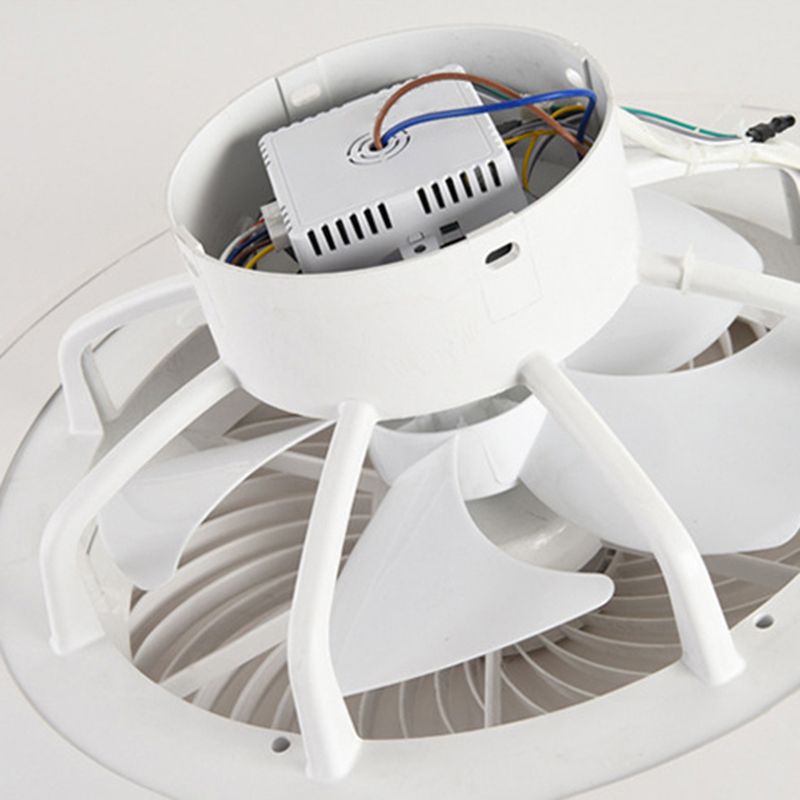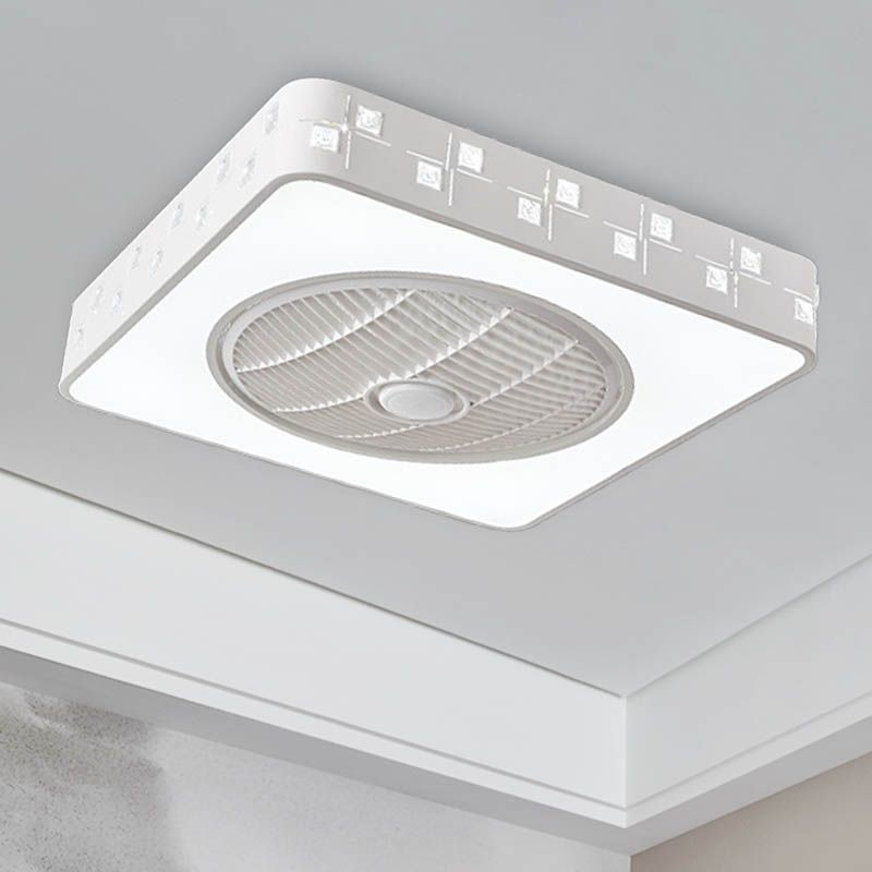 LED -Trommel/Box -Lüfter leichte minimalistische geschnitzte Kristall unsichtbare Klingen Deckenlampe in Weiß