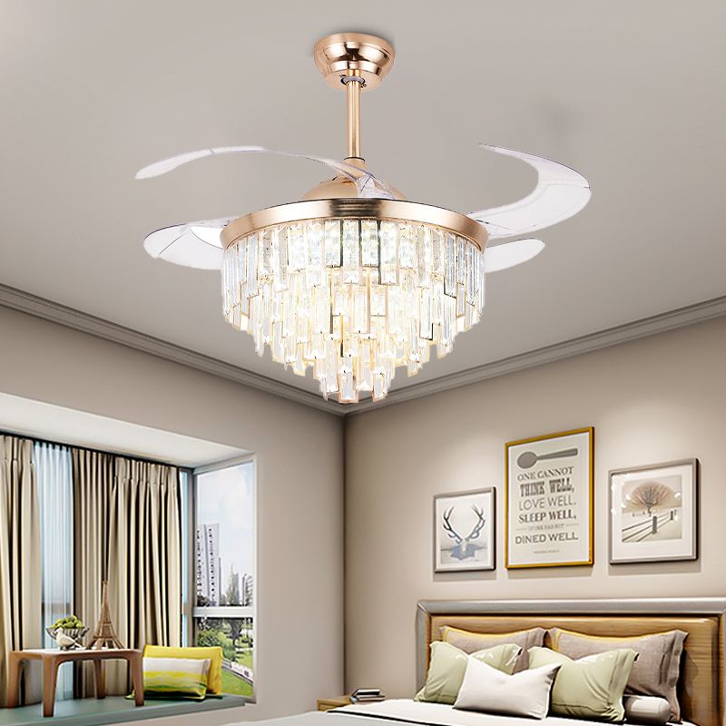 GOLD VIELED -Deckenventilator Leuchtmittel modernistische K9 -LED -LED -Leuchten mit Fernbedienung/Frequenzumwandlung für Esszimmer