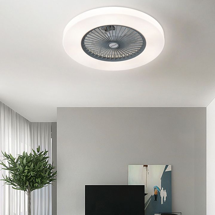 Moderne prägnante LED -Deckenlüfter Leicht lackierte Eisenkreisendeckenventilatoren mit Acrylschatten