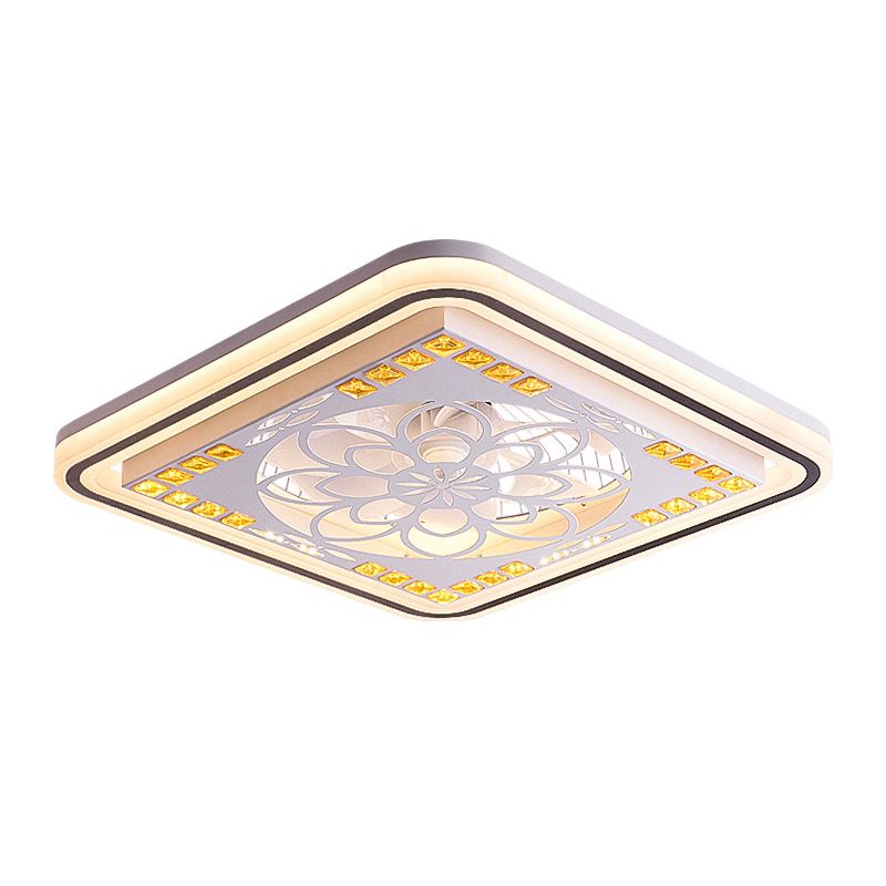 19,5 "W ausgehöhlte quadratische Semi-Flush-Licht moderne Kristallschlafzimmer Fernsteuerlüfter Lampe in Weiß
